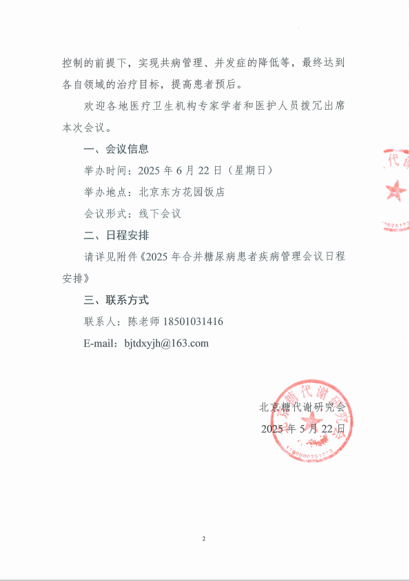 关于举办2025年合并糖尿病患者疾病管理会议的通知